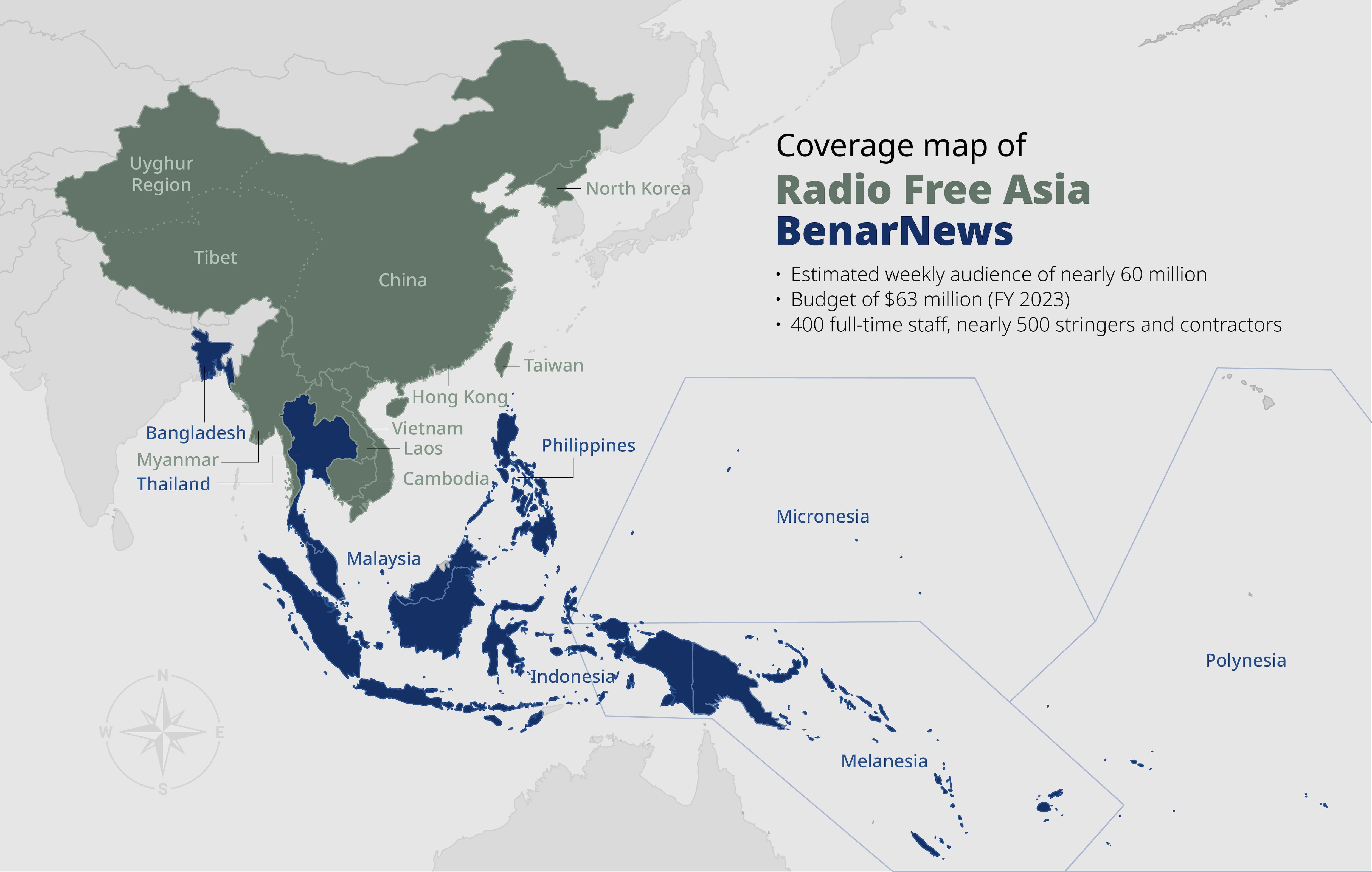 Radio Free Asia and its digital brands BenarNews and 歪脑 | WHYNOT provide independent, uncensored and accurate local news to a weekly audience of nearly 60 million who lack access to a free press or live in media environments vulnerable to authoritarian disinformation.