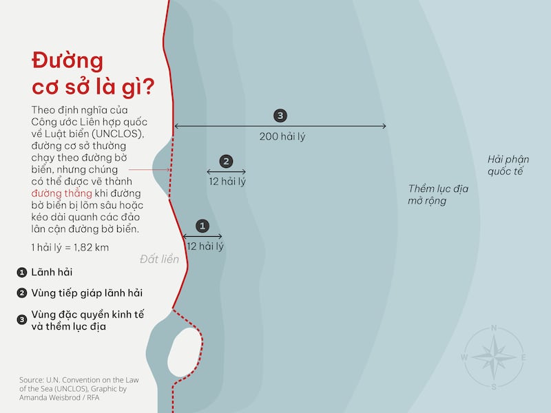 Đường cơ sở được dùng để xác định vùng lãnh hải, và vùng đặc quyền kinh tế của một quốc gia.